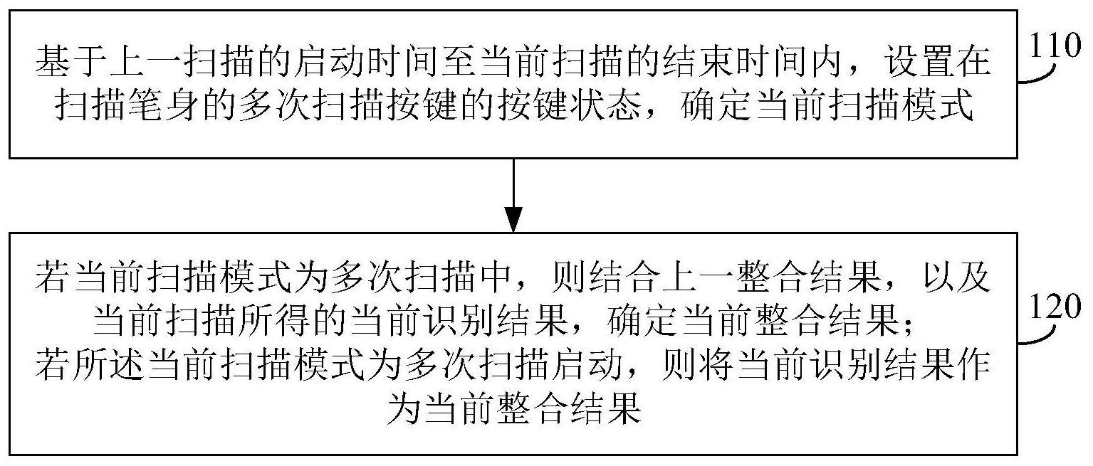 本發明實施例提供一種掃描方法、裝置、掃描筆和存儲介質,基于上一掃描的啟動時間至當前掃描的結束時間內,設置在掃描筆身的多次掃描按鍵的按鍵狀態,確定當前掃描模式;若所述當前掃描模式為多次掃描中,則結合上一整合結果,以及當前掃描所得的當前識別結果,確定當前整合結果;若所述當前掃描模式為多次掃描啟動,則將所述當前識別結果作為所述當前整合結果。本發明實施例提供的方法、裝置、掃描筆和存儲介質,通過設置多次掃描按鍵區分多次掃描和單次掃描,進而可以基于多次掃描按鍵的按鍵狀態判斷當前掃描模式,實現多次掃描下識別結果的自動整合。